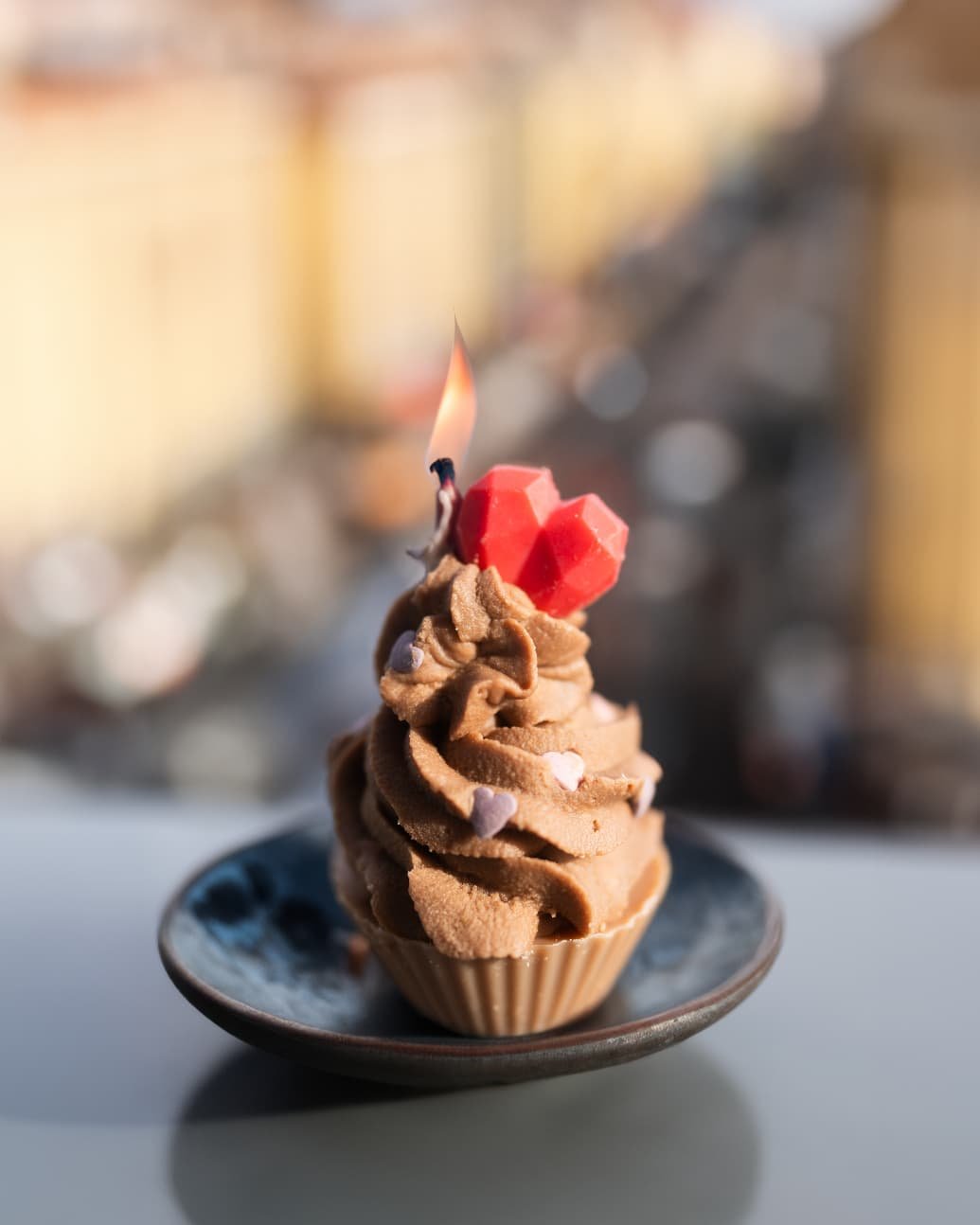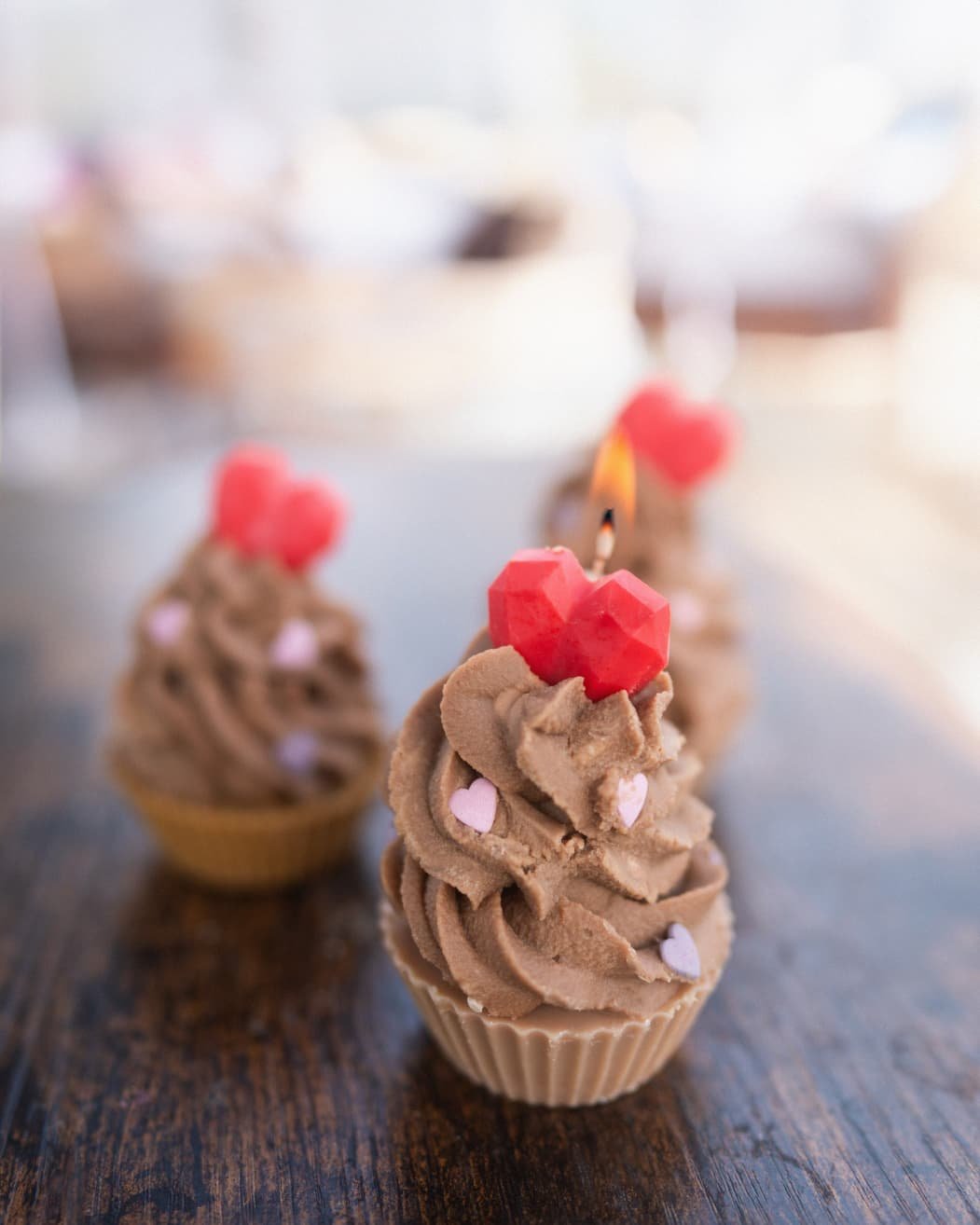 Lumânare brioșă cu inimioară și cacaoLumânare brioșă cu inimioară și cacao