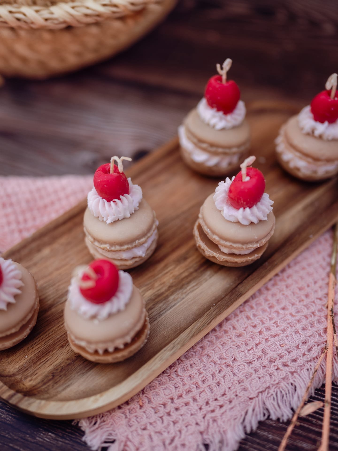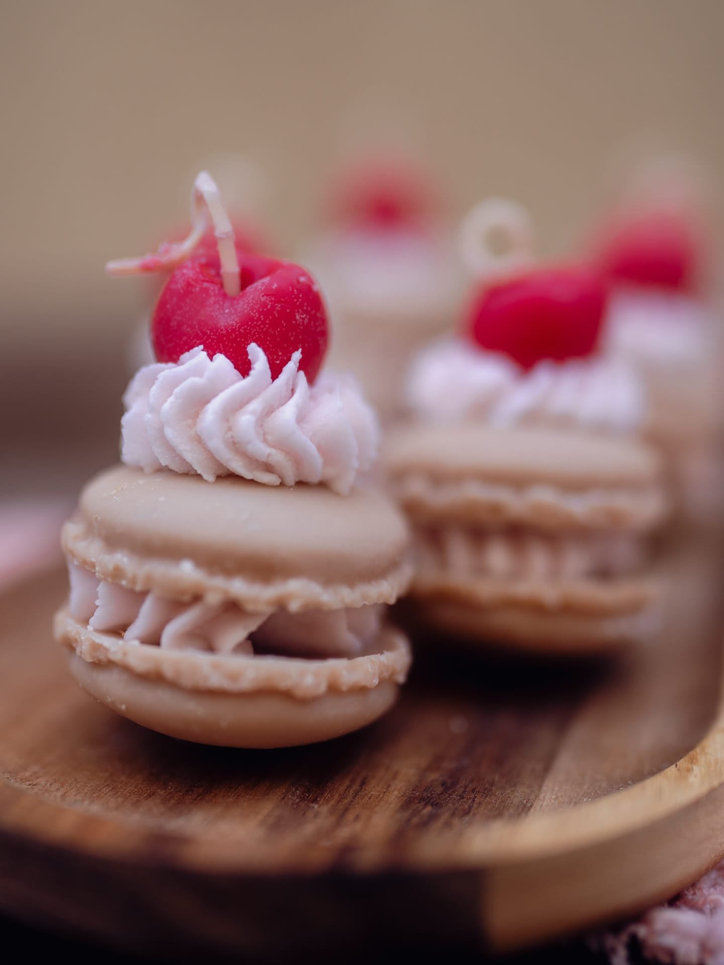 Lumânare macaron cu cireașăLumânare macaron cu cireașă